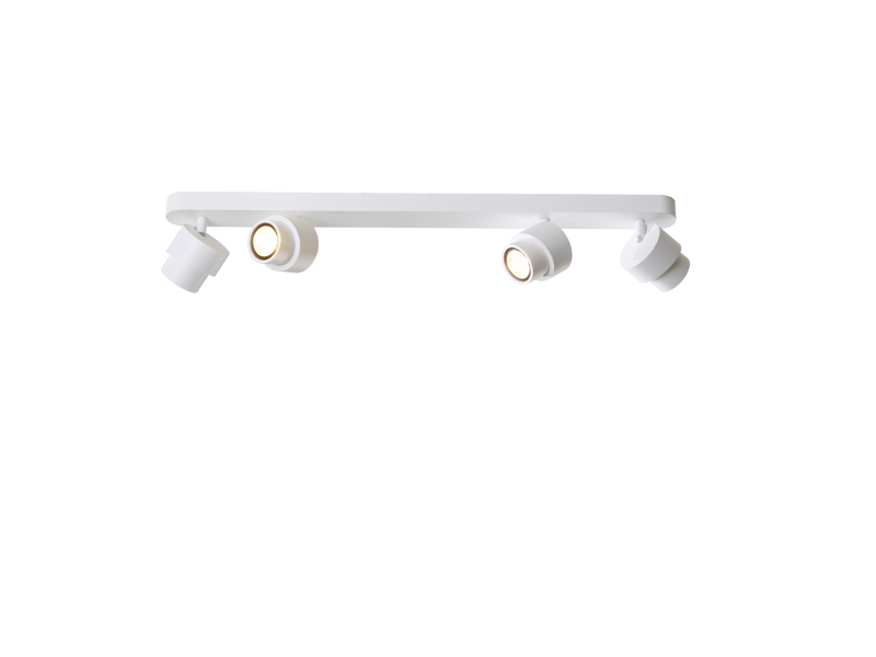 Moderner 4er Strahler weiß matt mit warmweißen Licht und austauschbarer Optik in 15, 30 und 50° Abstrahlwinkel für verschiedene Bedürfnisse von Spot bis Flood.