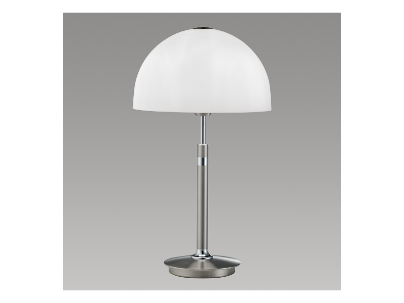 Stehleuchte mit Fuß Nickel matt mit Chrom abgestetzt, Glas weiß.