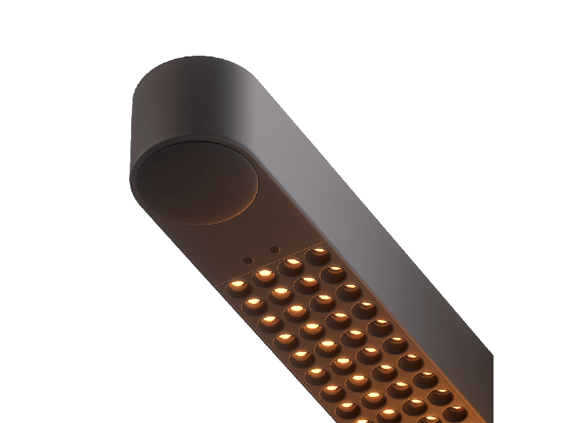 Office Leuchte aus Aluminium schwarz lackiert. Sie Leuchtet Tisch und Raum gleichzeitig aus.