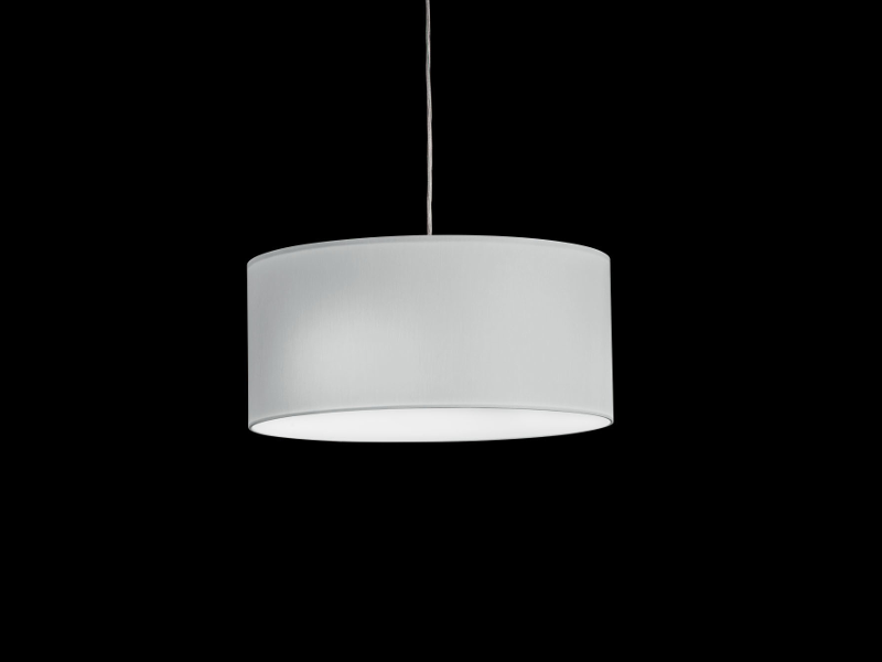 Pendelleuchte mit einem Stoffschirm aus Chintz in der Farbe Schiefer.
